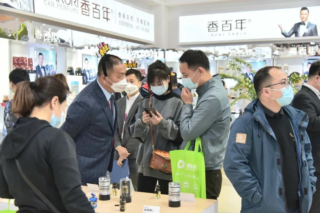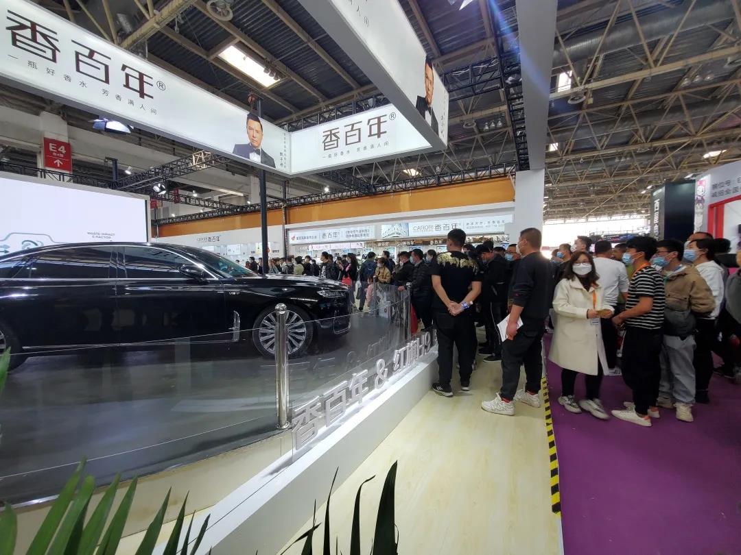 除了大氣的展位館設計,本次出征香百年的香薰產品更是收割不少好評,尤其是新品庫里南車載風口香水,因其藤條散香的方式、現代車載香氛的新探索的能力,被不少觀展游客贊,這也標志著香百年將引領2021車載風口香薰行業新風向!